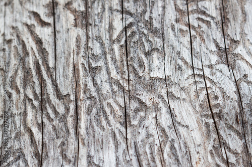 © Fotikphoto, Fototapeta premium Bark beetle gallery engraving on wood