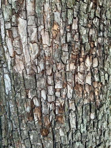 Fototapeta premium Bark surface with greenish mold and deep texture, perfect for nature...