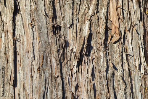 Fototapeta premium Bark tree close-up. Rough texture. Natural background, gray-brown color