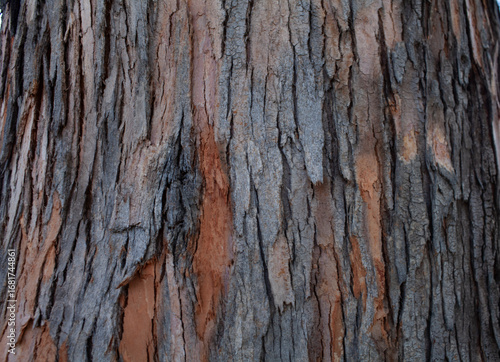 Fototapeta premium Bark with Red and Grey Texture Close-Up