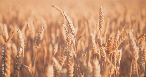 Fototapeta premium Barley field background. Bottom view. Agriculture, agronomy, industry concept.