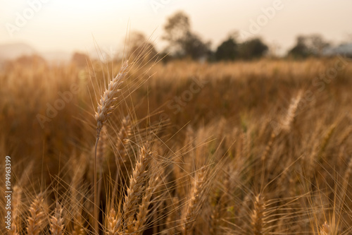 © skarie, Fototapeta premium Barley Field in period harvest at sunset.