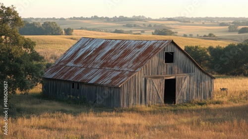 © Stephen, Obraz premium Barn in Field with Distant Hills