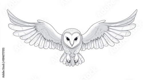 © erlina, Fototapeta premium Barn owl in flight, white background, wildlife illustration, design element
