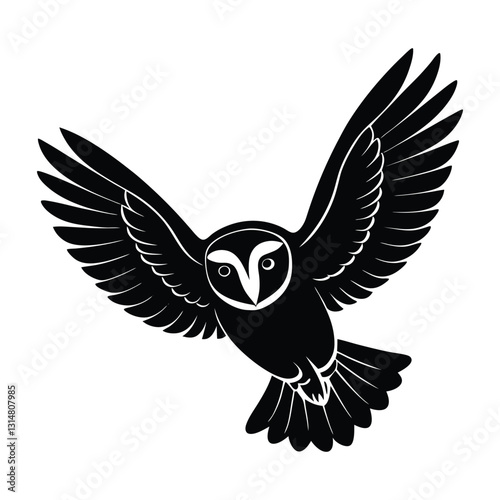 © creativemimi09, Obraz premium Barn Owl in Silent Flight with Rounded Wings Silhouette