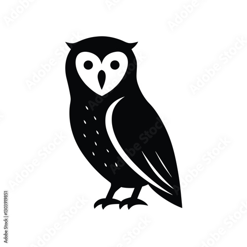 © JhumaRaniDas, Fototapeta premium Barn Owl Silhouette Vector | Black and White Barn Owl Bird Illustration