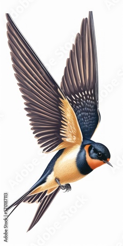 Obraz premium Barn Swallow Flying wings spread, bird, Hirundo rustica, flying against white background. Generative AI
