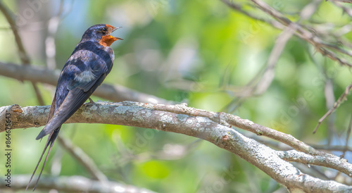 © Lecia Michelle, Obraz premium Barn swallow perched in a tree.