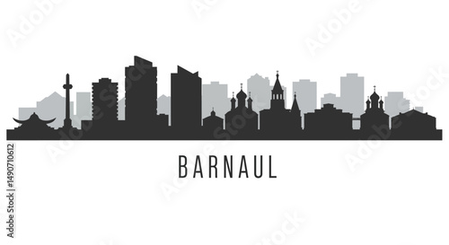 © godsfavoritearts, Naklejka premium Barnaul City Skyline Silhouette.
