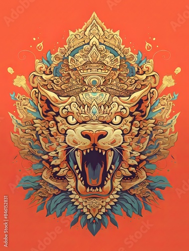 © Hungarian, Obraz premium Barong Bali Mask Illustration Head Symmetrical