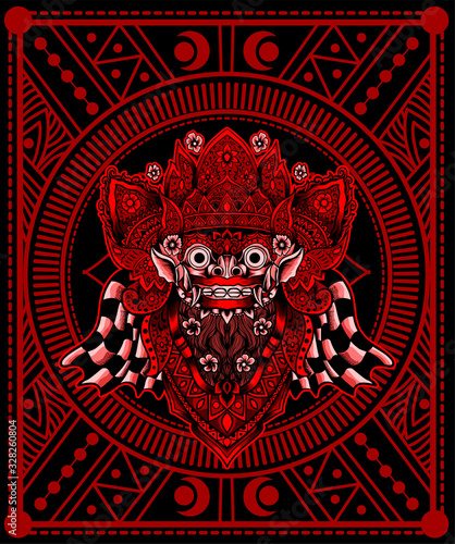 Fototapeta premium Barong mask with geometric pattern,balinese traditional culture-vector illustration art