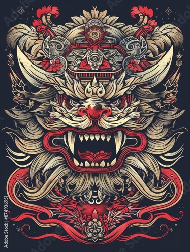 Fototapeta premium Barong Mask with Intricate Details and Vibrant Colors
