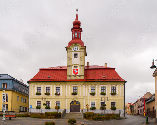 © pyty, Fototapeta premium Baroque town hall with clock tower in Hlinsko, Vysocina, Czech Republic.