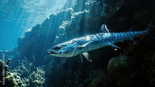 Fototapeta premium Barracuda in wild nature. Copy Space