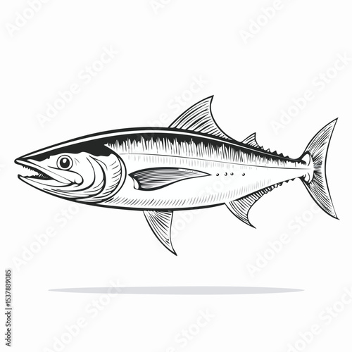 Fototapeta premium Barracuda line drawing featuring smooth sketch-style strokes in a refined black and white vector design.