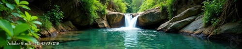 © AiGallery, Fototapeta premium Barranco de Azuaje canyon with small waterfall and lush vegetation, waterfall, nature