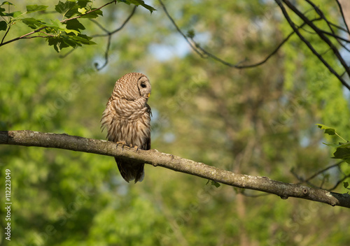 Obraz premium Barred owl perched in tree