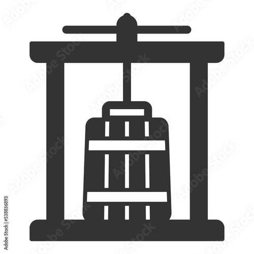 © OlegF, Obraz premium Barrel with grapes under pressure for squeezing juice - icon, illustration on white background, glyph style