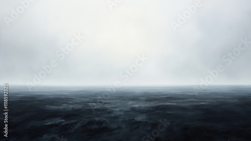 Fototapeta premium Barren plowed field in dense white fog