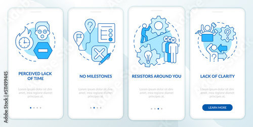 Fototapeta premium Barriers to change management blue onboarding mobile app screen. Walkthrough...