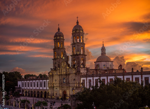 Fototapeta premium Basílica de Nuestra Señora de Zapopan, arquitectura, barroco, santuario franciscano, atardecer