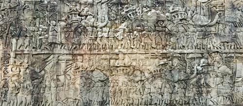 Obraz premium Bas-relief at Bayon temple in Angkor Thom. Siem Reap. Cambodia. Panorama