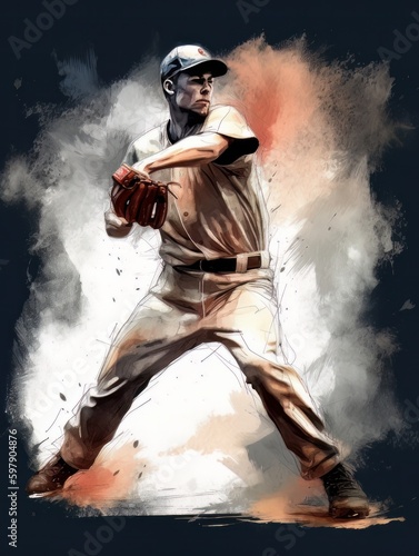 © August, Obraz premium Baseball. Batting, pitching, fielding. Generative AI