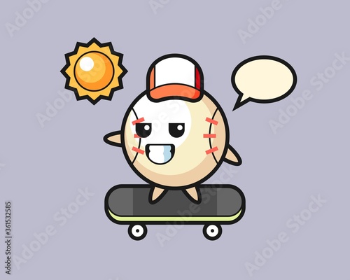 © heriyusuf, Fototapeta premium Baseball cartoon ride a skateboard