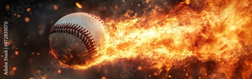 © BG_Illustrations, Obraz premium Baseball on fire flying with intense energy