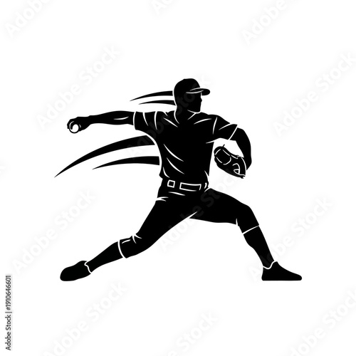 © Muhammad, Naklejka premium Baseball Pitcher Silhouette Throwing Ball Vector Illustration
