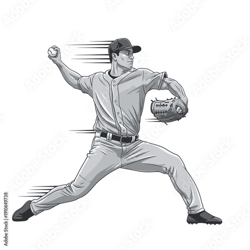 © Muhammad, Naklejka premium Baseball Pitcher Throwing Fastball Dynamic Vector Illustration