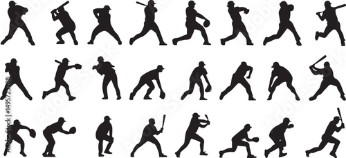 © Stocksitebd, Naklejka premium Baseball Player Silhouettes Action Poses Collection