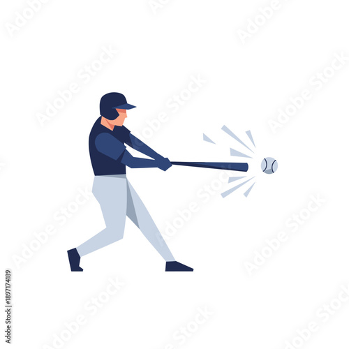 Obraz premium Baseball player swinging bat hitting ball, dynamic action motion