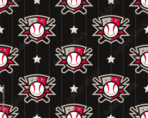 © augustos, Fototapeta premium Baseball sport seamless pattern. Baseball emblem tournament pattern template editable for your design.