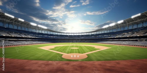 © Nice Seven, Obraz premium Baseball Stadium Under Sunny Sky
