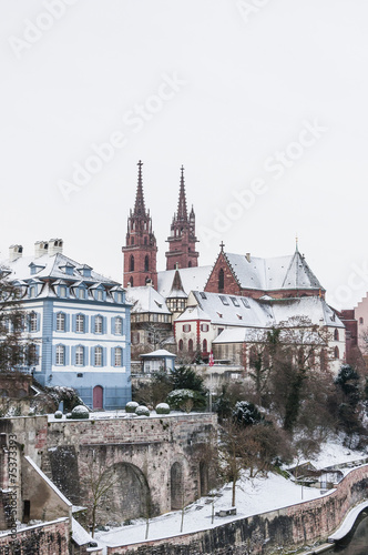 Obraz premium Basel, Altstadt, historische Münster, Kirche, Winter, Schweiz