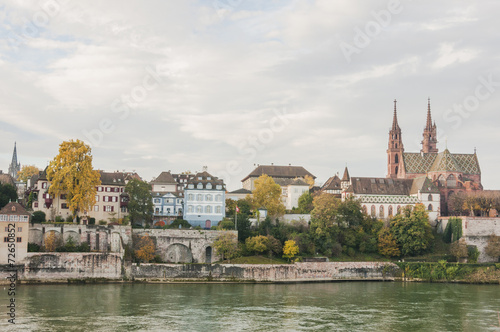 © bill_17, Obraz premium Basel, Altstadt, Münster, Rhein, Altstadthäuser, Herbst, Schweiz