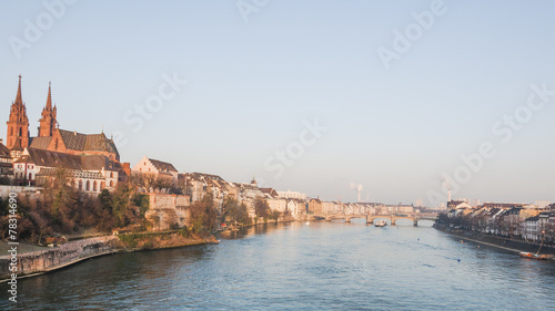 © bill_17, Obraz premium Basel, Altstadt, Rheinschifffahrt, Rheinbrücke, Winter, Schweiz