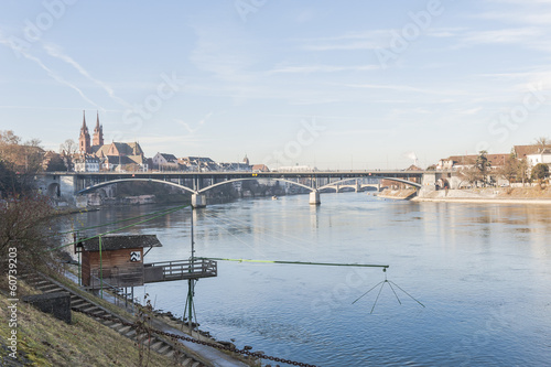 © bill_17, Fototapeta premium Basel, Altstadt, Rheinufer, Rhein, Fischer, Schifffahrt, Schweiz