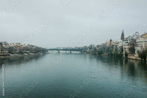 © bill_17, Fototapeta premium Basel, Münster, Kirche, Pfalz, Rhein, Rheinufer, Riesenrad, Grossbasel, Kleinbasel, Altstadt, Altstadthäuser, Wettsteinbrücke, Winter, Schneedecke, Schweiz