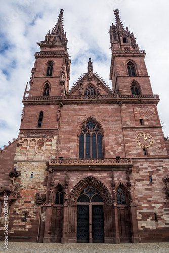 Fototapeta premium Basel Minster, originally a Catholic cathedral and today a Reformed Protestant church. The original cathedral was built between 1019 and 1500 in Romanesque and Gothic styles, Basel, Switzerland