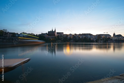 © Ipsimus, Fototapeta premium basel switzerland at rhine river in twilight.