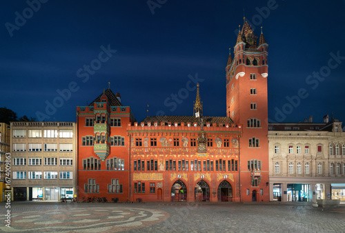 © bbsferrari, Naklejka premium Basel, Switzerland. View of 500-year-old red building of Basel Town Hall