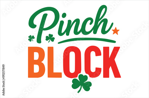 Fototapeta premium Basic RGBVibrant Pinch Block typography with shamrocks for St. Patrick's Day