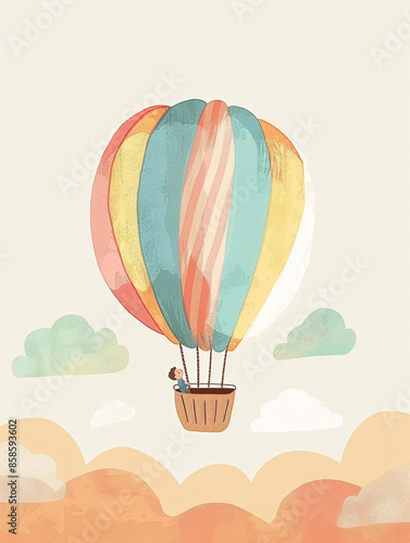 © Wendelin, Obraz premium basic simple vector art children's illustration of a hot air baloon pastel tones