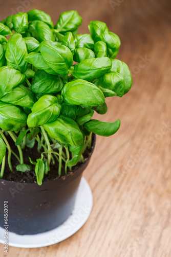© nanisimova, Fototapeta premium basil herb plant on wooden table