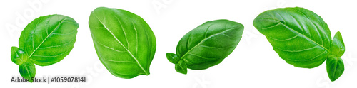 Obraz premium Basil isolated. Flying basil leaves collection. Levitating Basil leaf set...