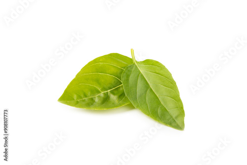 © Avocado_studio, Obraz premium Basil isolated on white background. Fresh organic basil leaves isolated on white background. Spices. Vegan.
