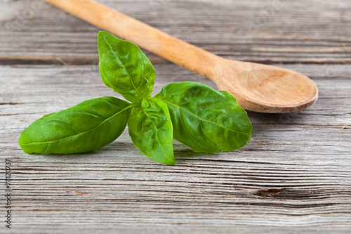 Fototapeta premium basil leaf on wooden background