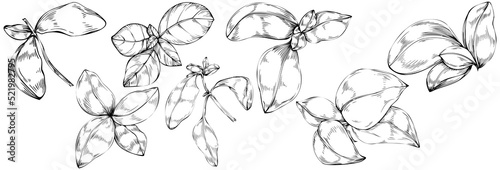 © yanushkov, Fototapeta premium Basil vector isolated. Herbal engraved style illustration. Detailed organic product sketch. The best for design logo, menu, label, icon, stamp.